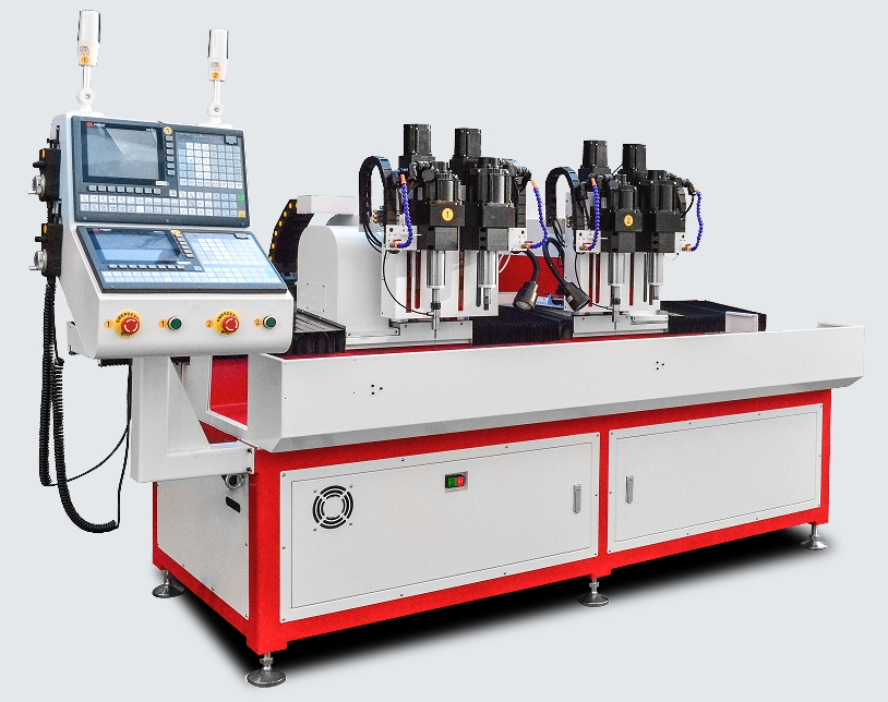 這是一臺(tái)來(lái)自浙江客戶(hù)定制的智能數(shù)控雙軸倒角機(jī),雙工位同時(shí)檢測(cè)并補(bǔ)償平面度后再進(jìn)行倒角加工。